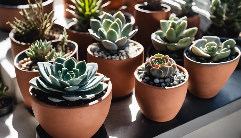 Wybór odpowiedniego materiału doniczki jest kluczowy dla zdrowia twoich sukulentów. Doniczki ceramiczne to świetna opcja, ponieważ sprzyjają naturalnej ewaporacji i oddychaniu korzeni, zapewniając, że twoje rośliny rozwijają się, a jednocześnie wyglądają świetnie.