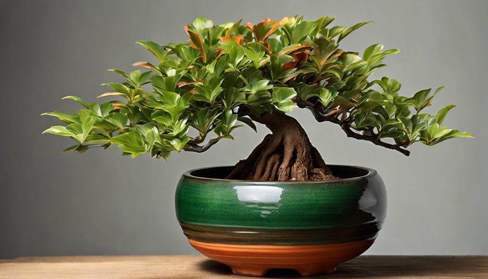 Wybierając doniczkę dla swojego bonsai Ficus, skup się na rozmiarze, kształcie i estetyce, aby wspierać zdrowy wzrost. Wybierz okrągłą lub owalną doniczkę o szerokości wynoszącej około jednej trzeciej wysokości drzewa. Upewnij się, że ma otwory drenażowe, aby zapobiec gniciu korzeni. Wysokość doniczki powinna odpowiadać szerokości pnia powyżej nebari dla zachowania równowagi. Weź pod uwagę design; łagodne linie pasują do wdzięcznej natury Ficus. Kolor i tekstura mogą podkreślić piękno i harmonię w Twojej ekspozycji bonsai. Jest jeszcze wiele do rozważenia, więc bądź na bieżąco z poradami, jak dokonać najlepszego wyboru w swojej podróży z bonsai.